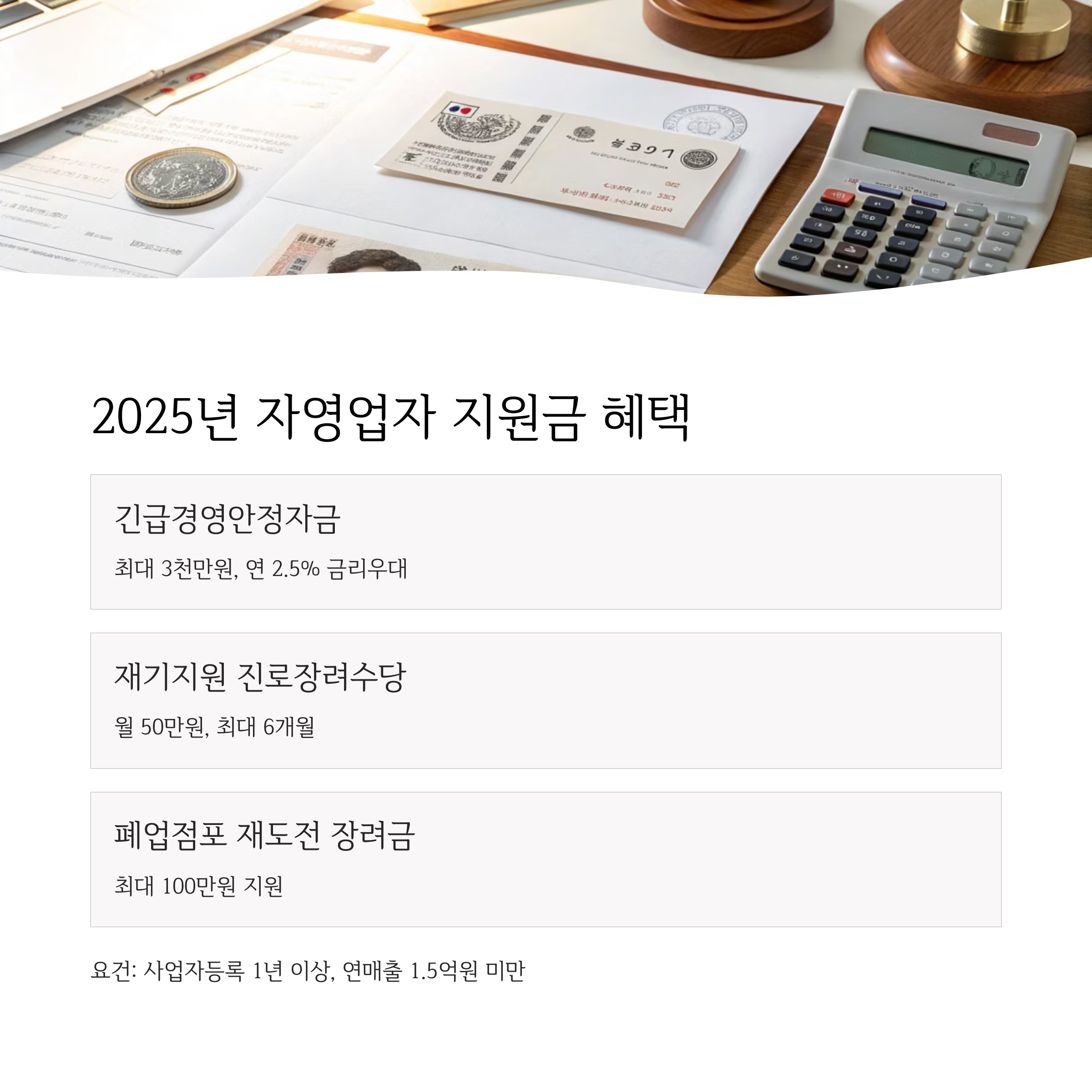 2025년 자영업자 지원금, 전직장려수당, 재도전 장려금으로
