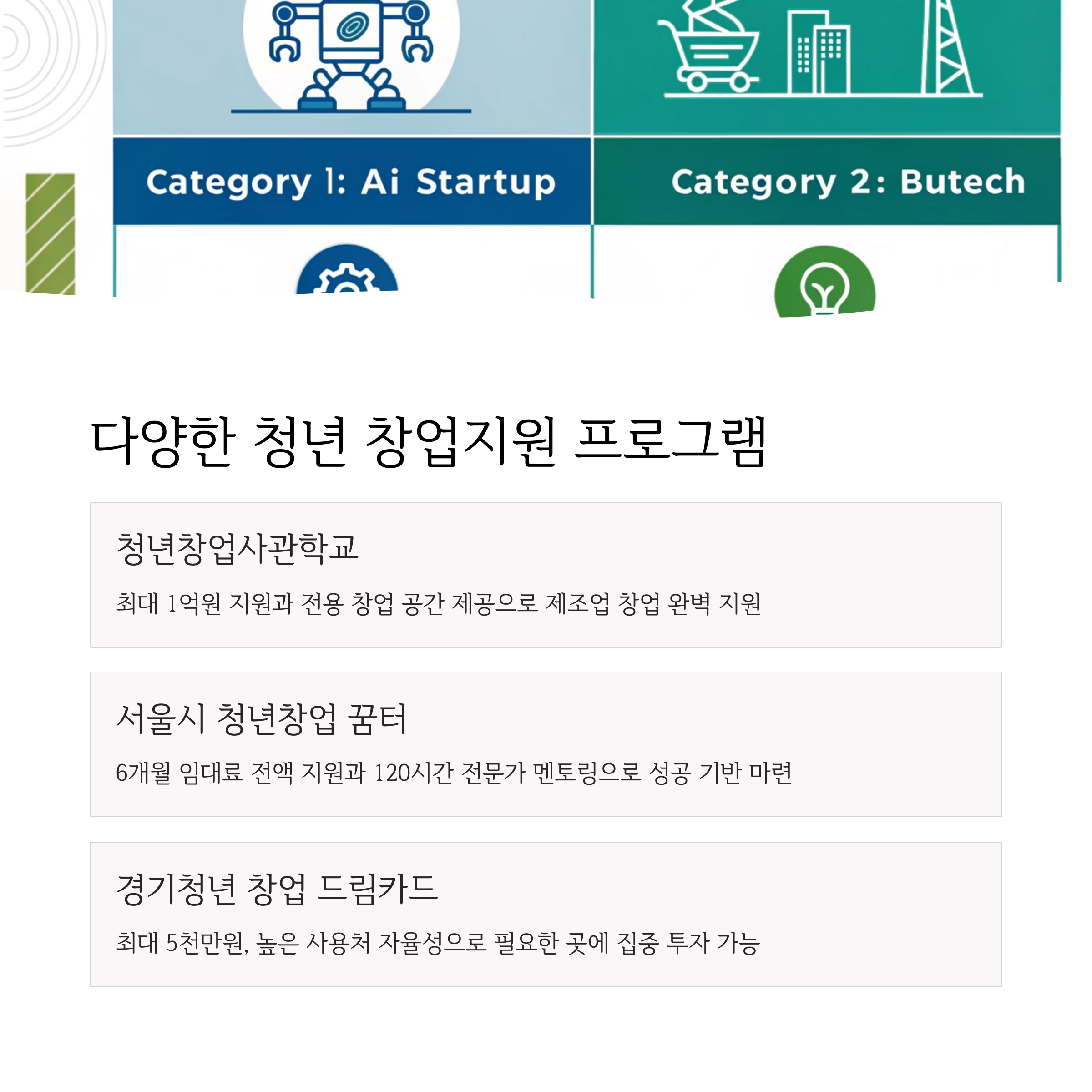 2025년 청년 창업지원 사업 종류와 주요 특징