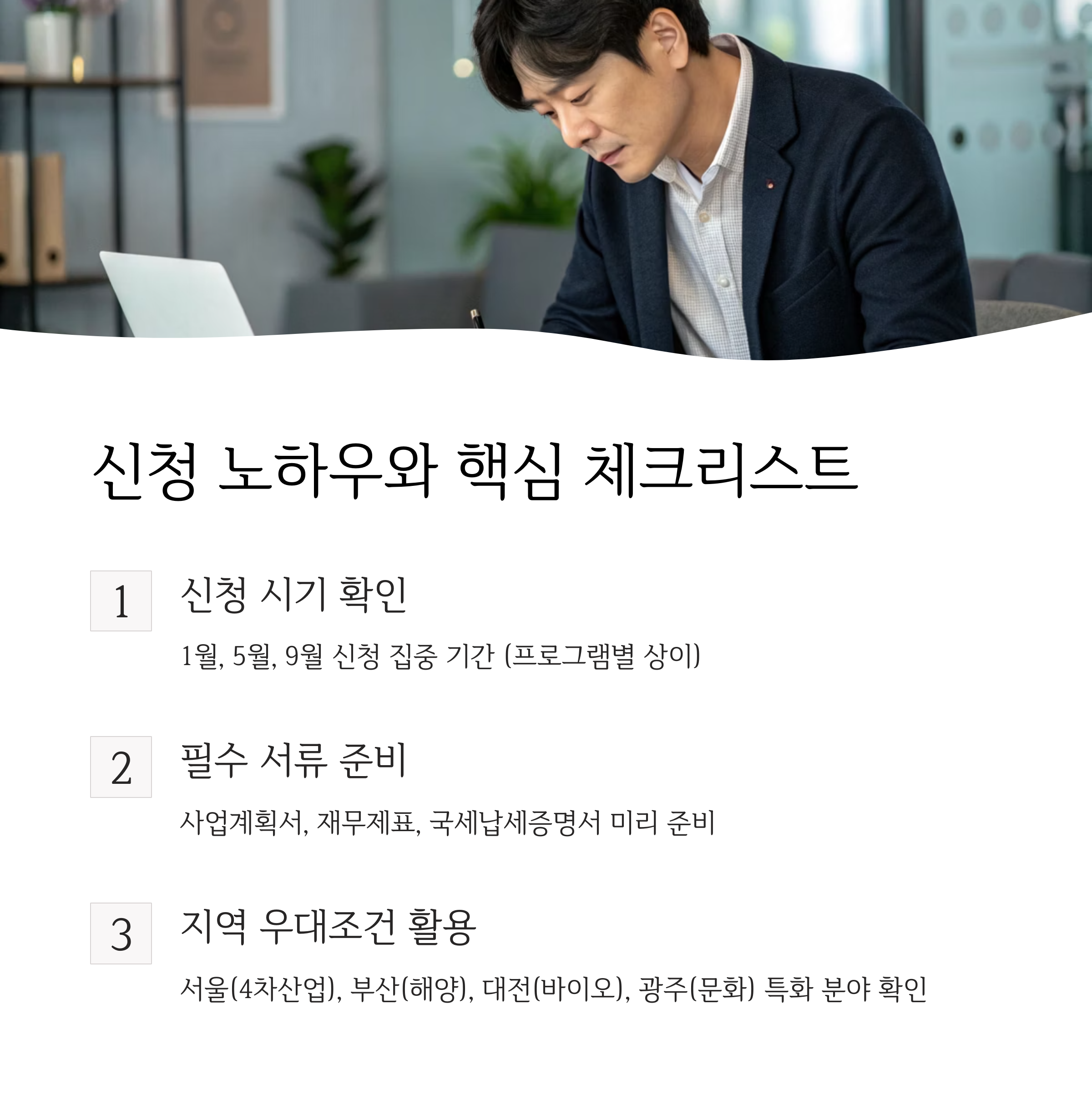 지역별로 업종 제한, 추가 서류, 평가 방식이 다르니 꼭 확인하세요.