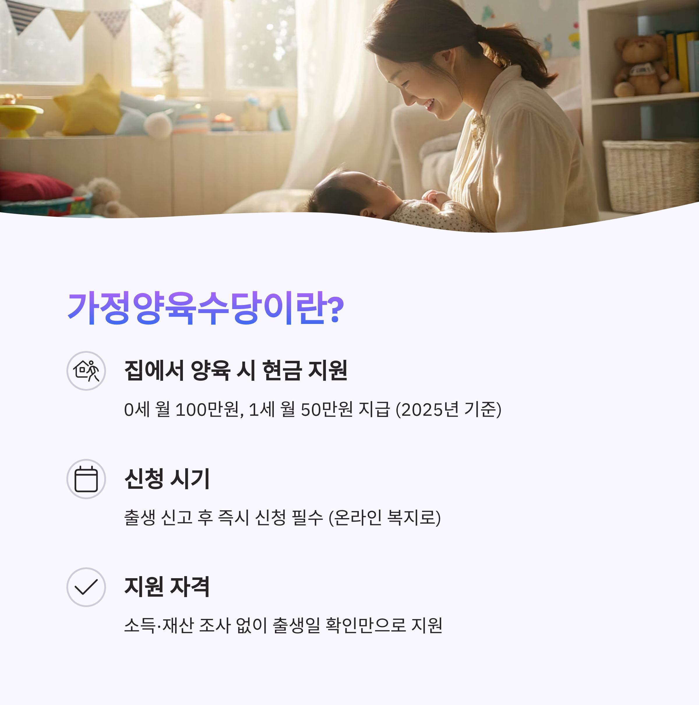 2025년 기준, 가정양육수당과 어린이집 보육료는