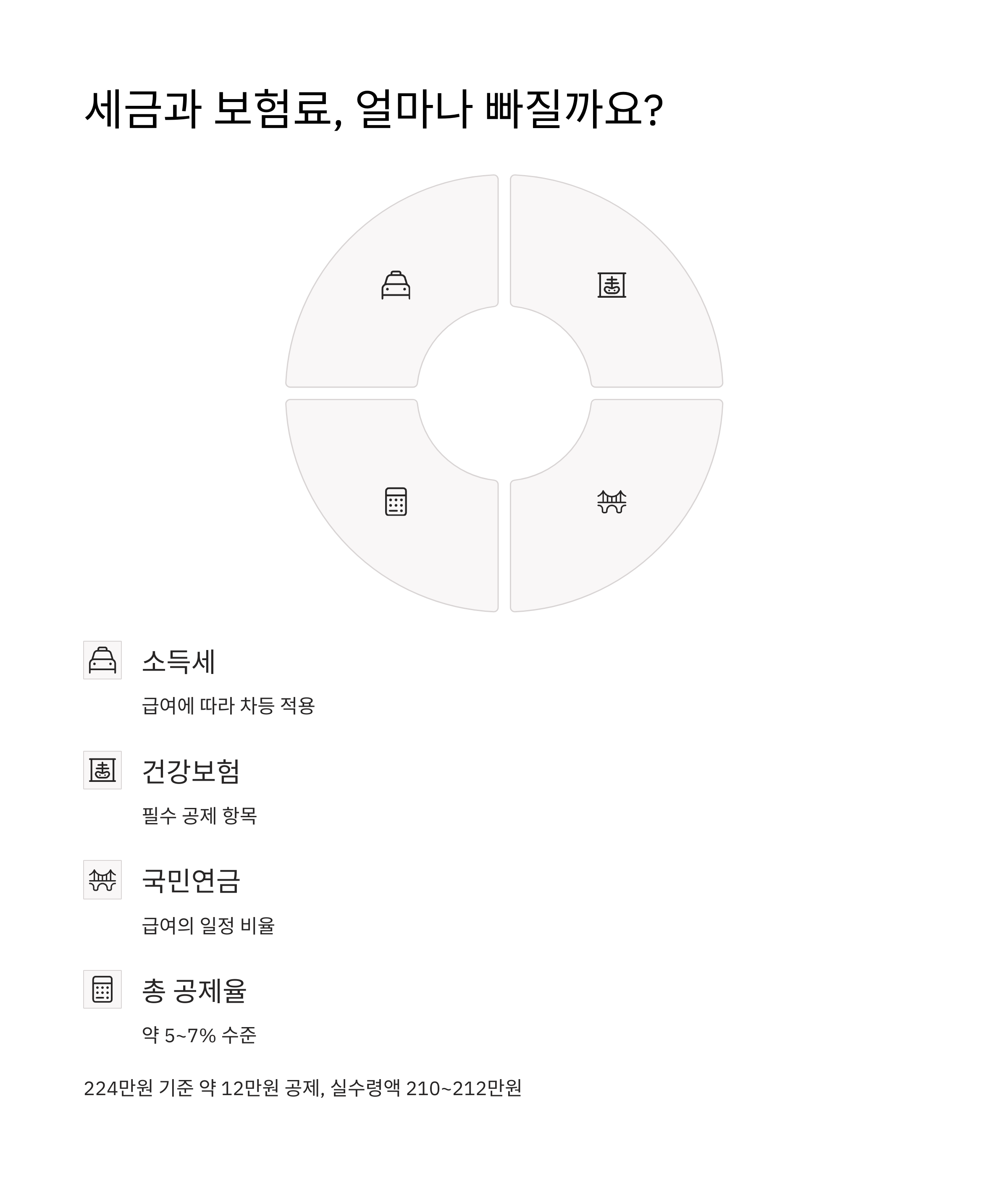- 공제항목: 소득세 + 4대보험 (약 5~7%)