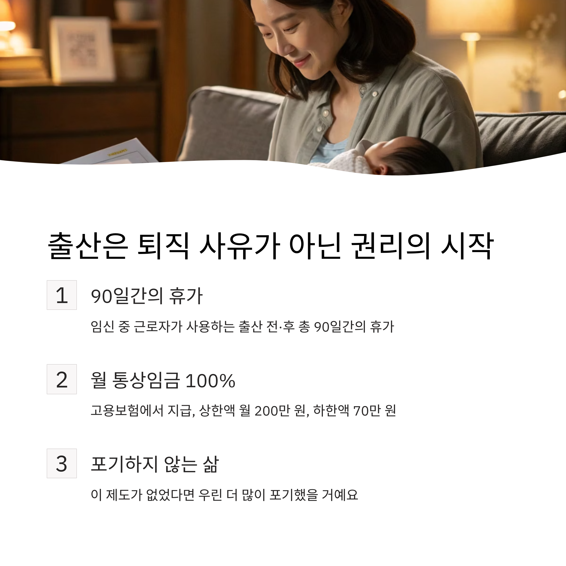 - 내용: 출산 전후 휴가 90일(다태아 120일)
