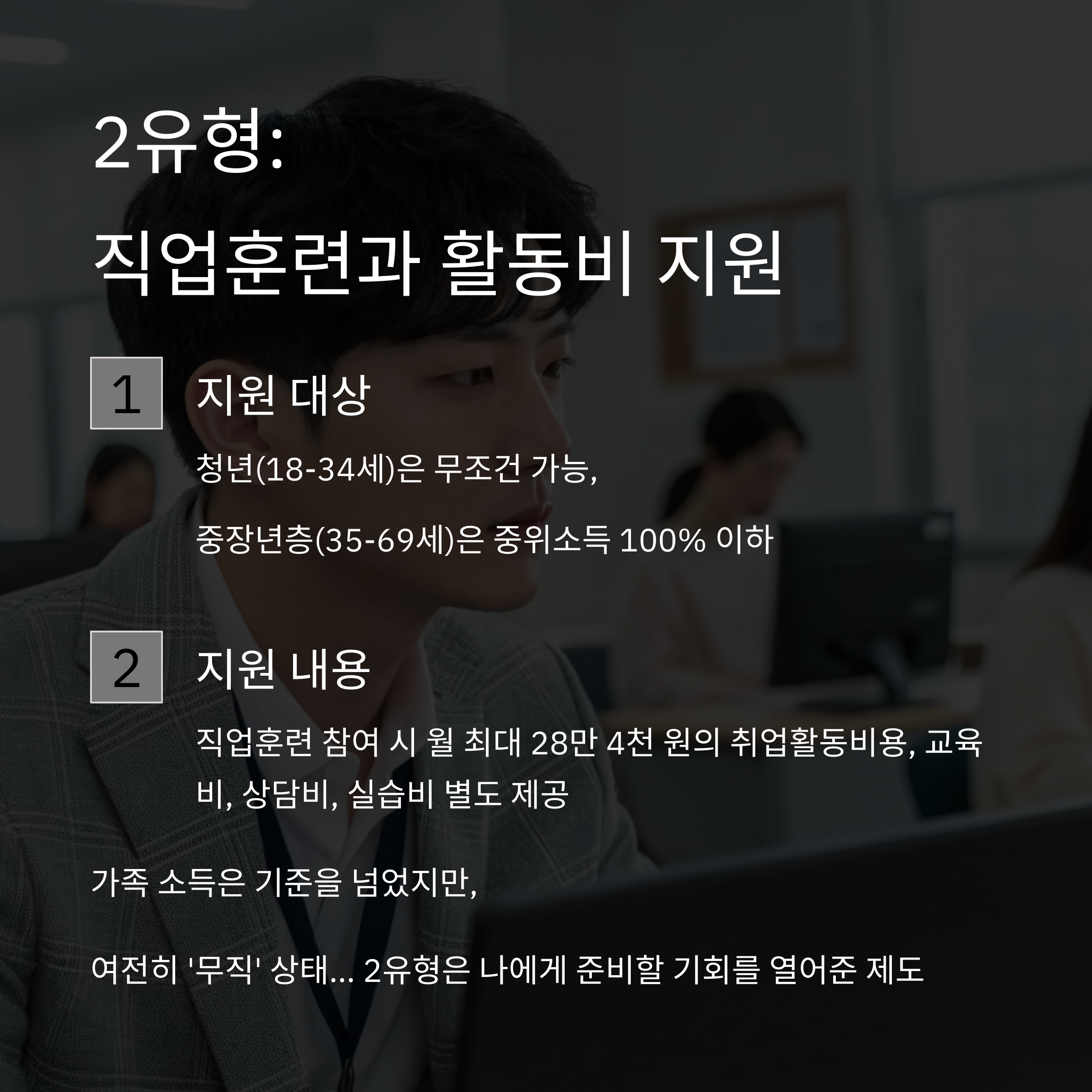 • 지원내용: 직업훈련 참여 시 월 28.4만 원