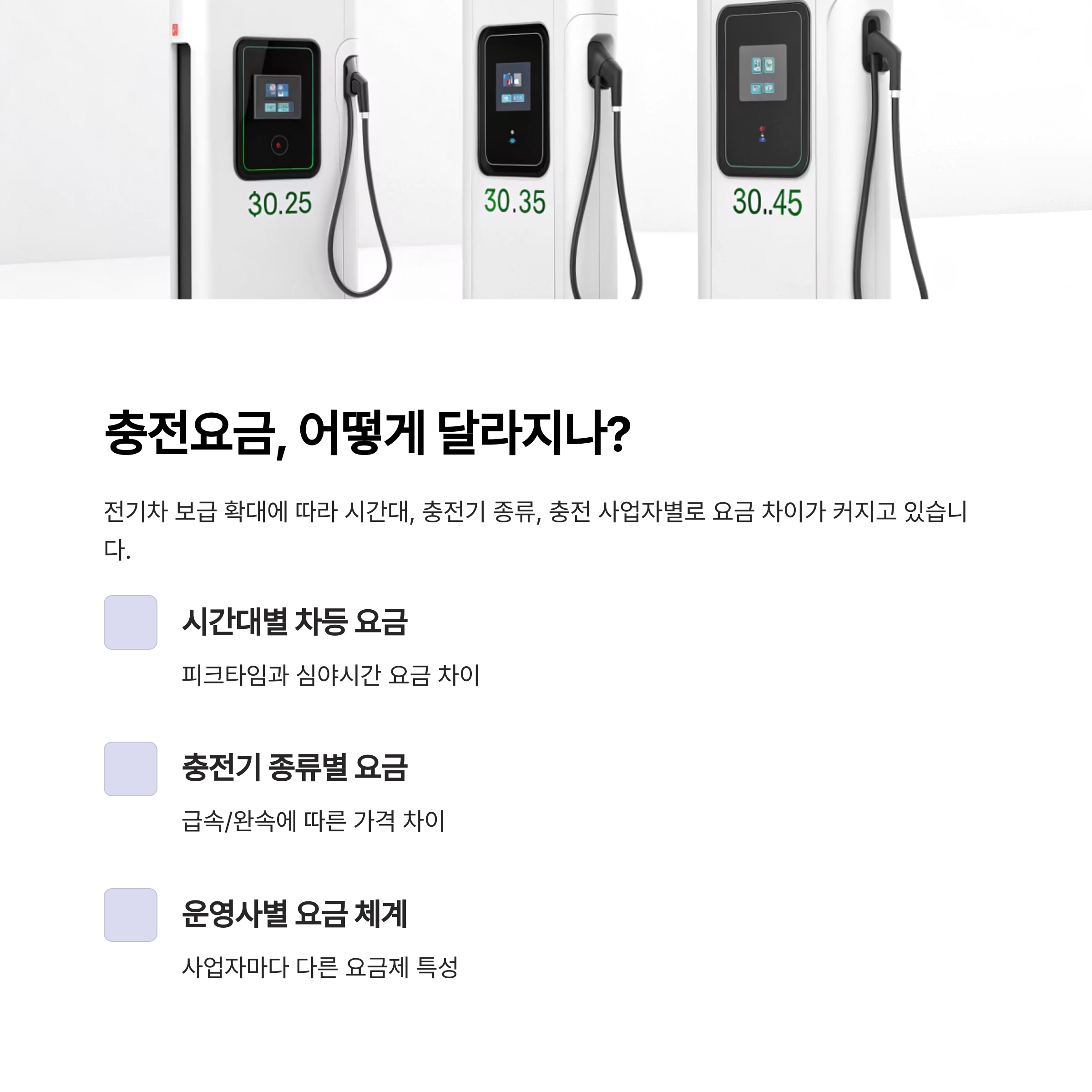 시간대, 충전기 종류, 충전 사업자에 따라 요금 차이가 크기 때문에