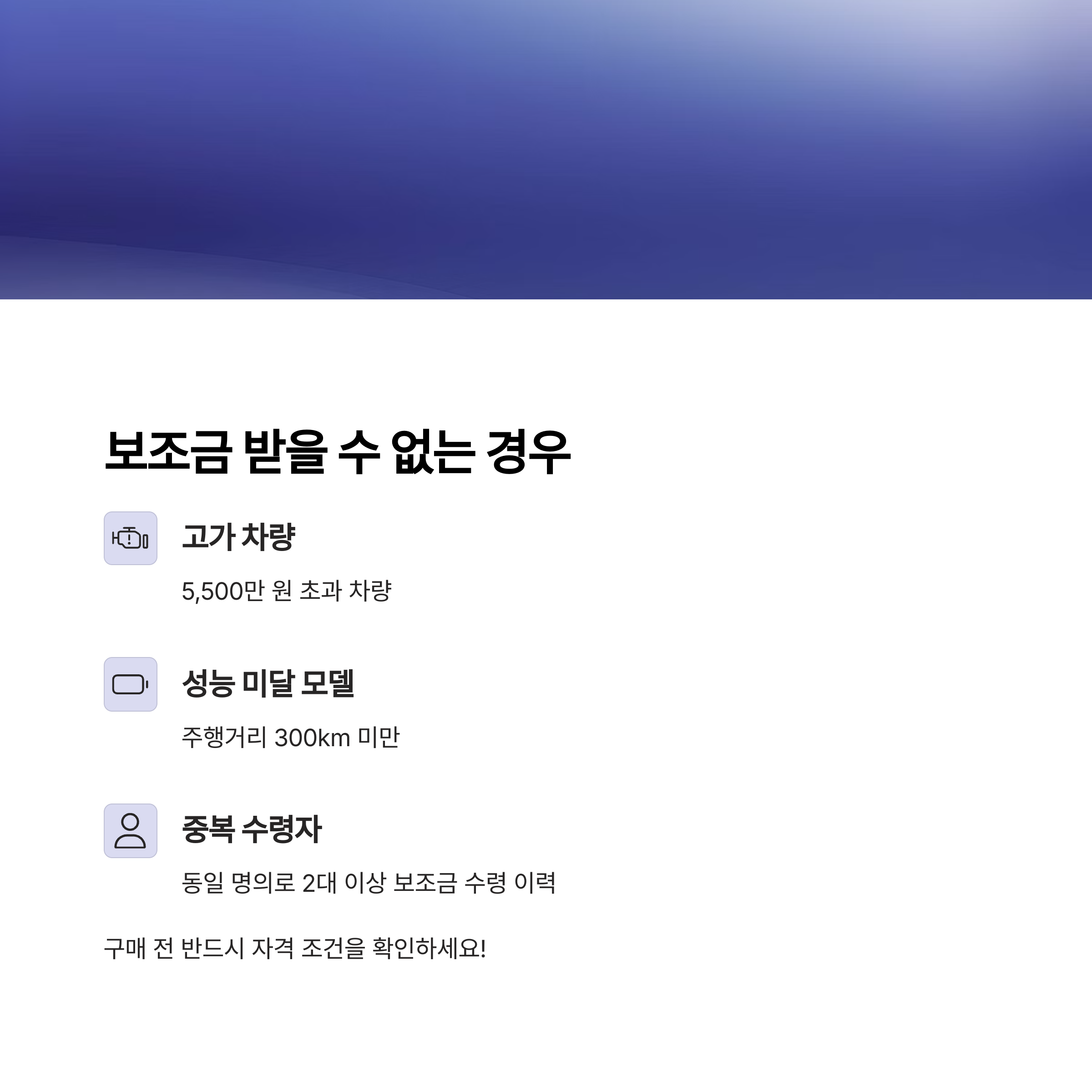 다음과 같은 조건일 경우 2025년전기차보조금이 제한되거나 지급되지 않습니다