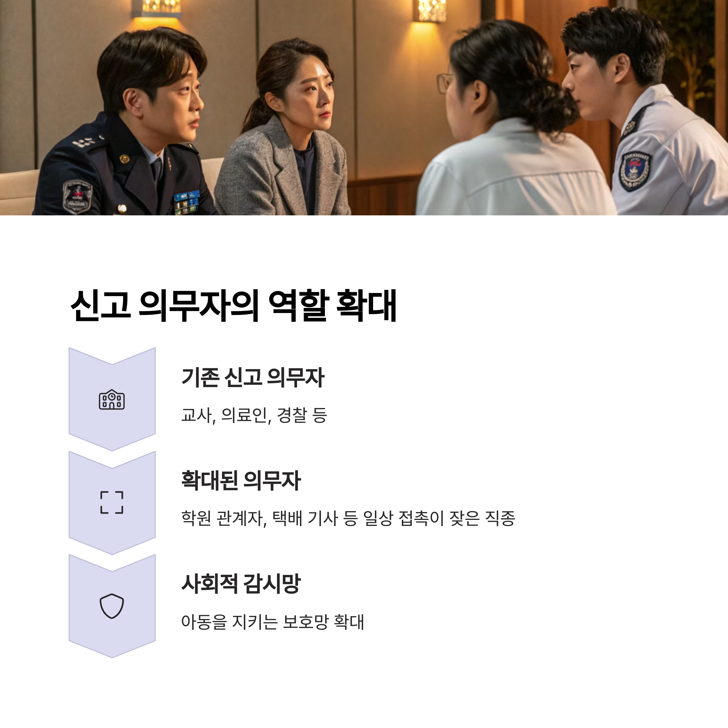 신고 의무 대상이 확대되어 아동을 지키는 사회적 감시망이 넓어졌습니다