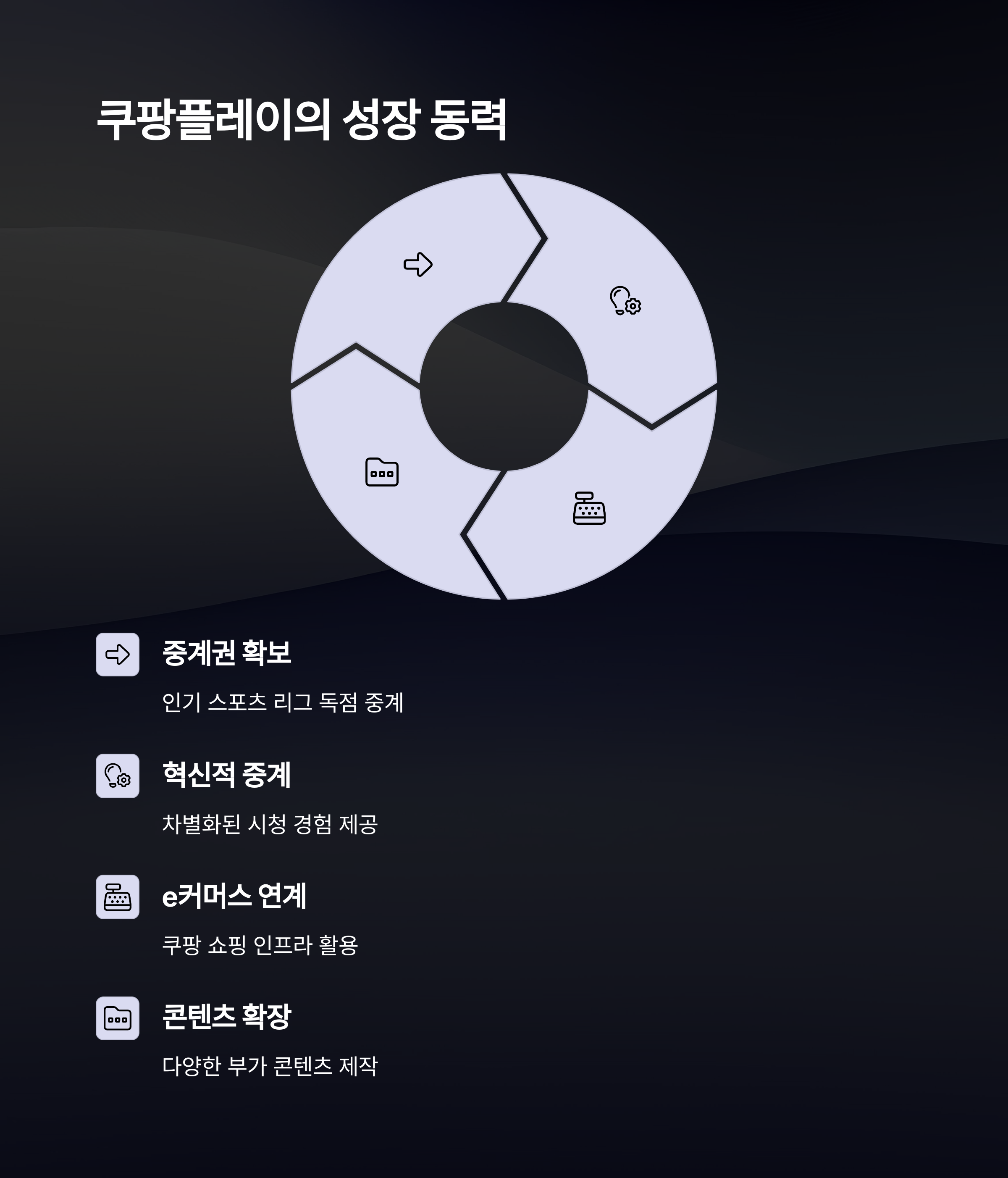 다양한 스포츠 리그의 중계권 확보, 혁신적인 중계 방식, e커머스와의 연계 등은 쿠팡플레이가