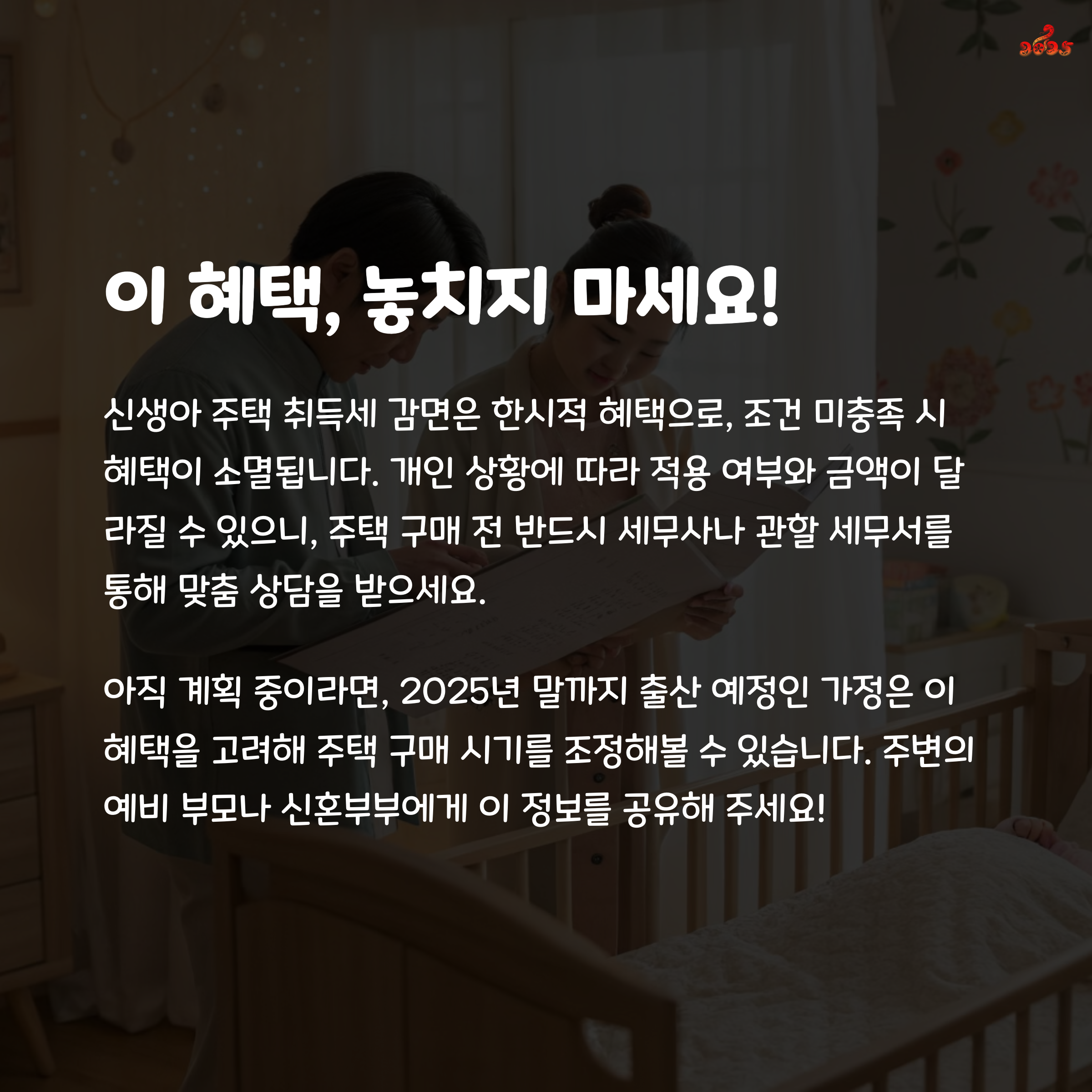 출산 후 내 집 마련? 세금 부담 확 줄어든 기회!