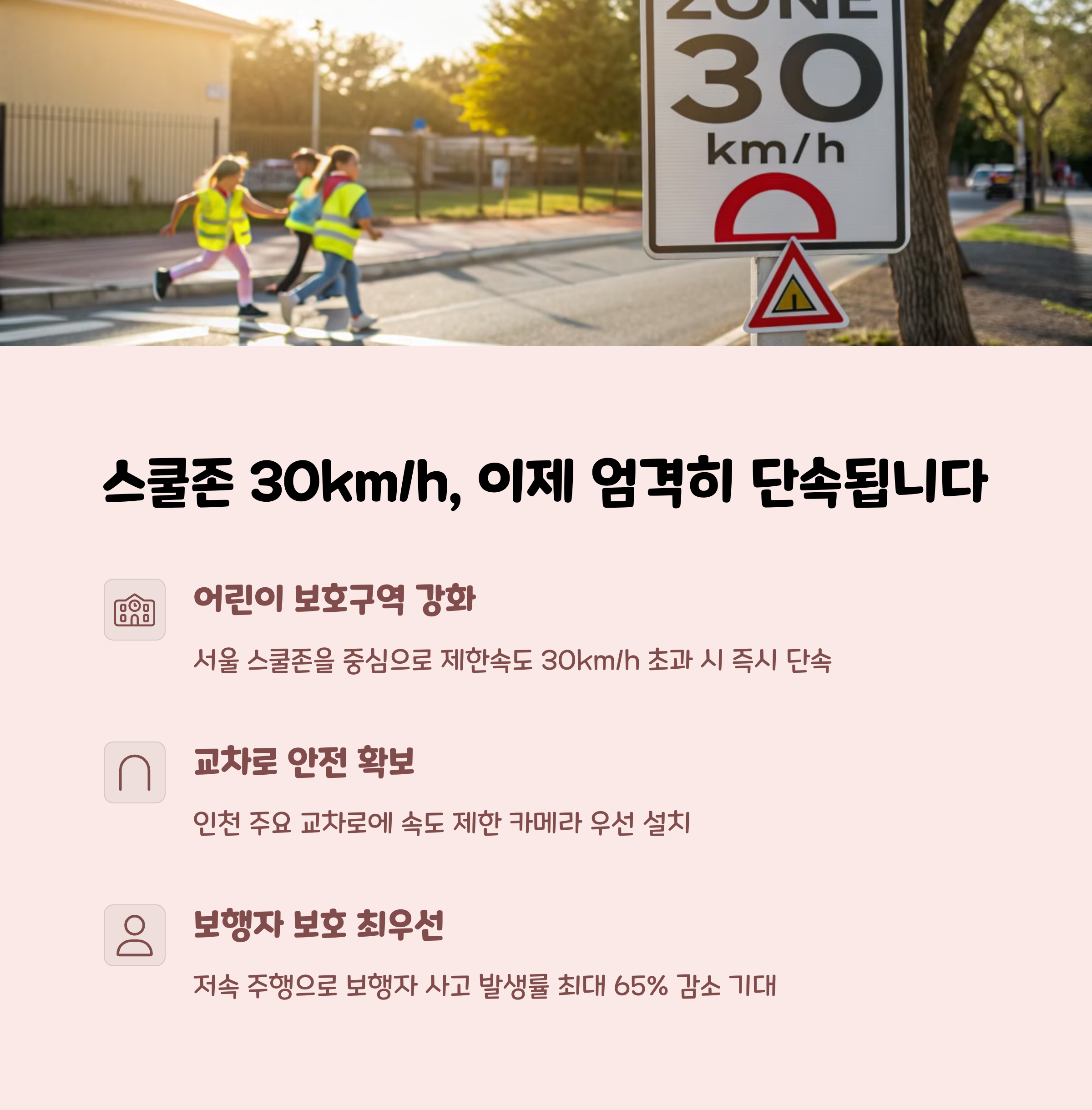 특히 스쿨존과 교차로를 중심으로 집중 배치되며, 제한속도 또한 일부 지역에서 조정됩니다.