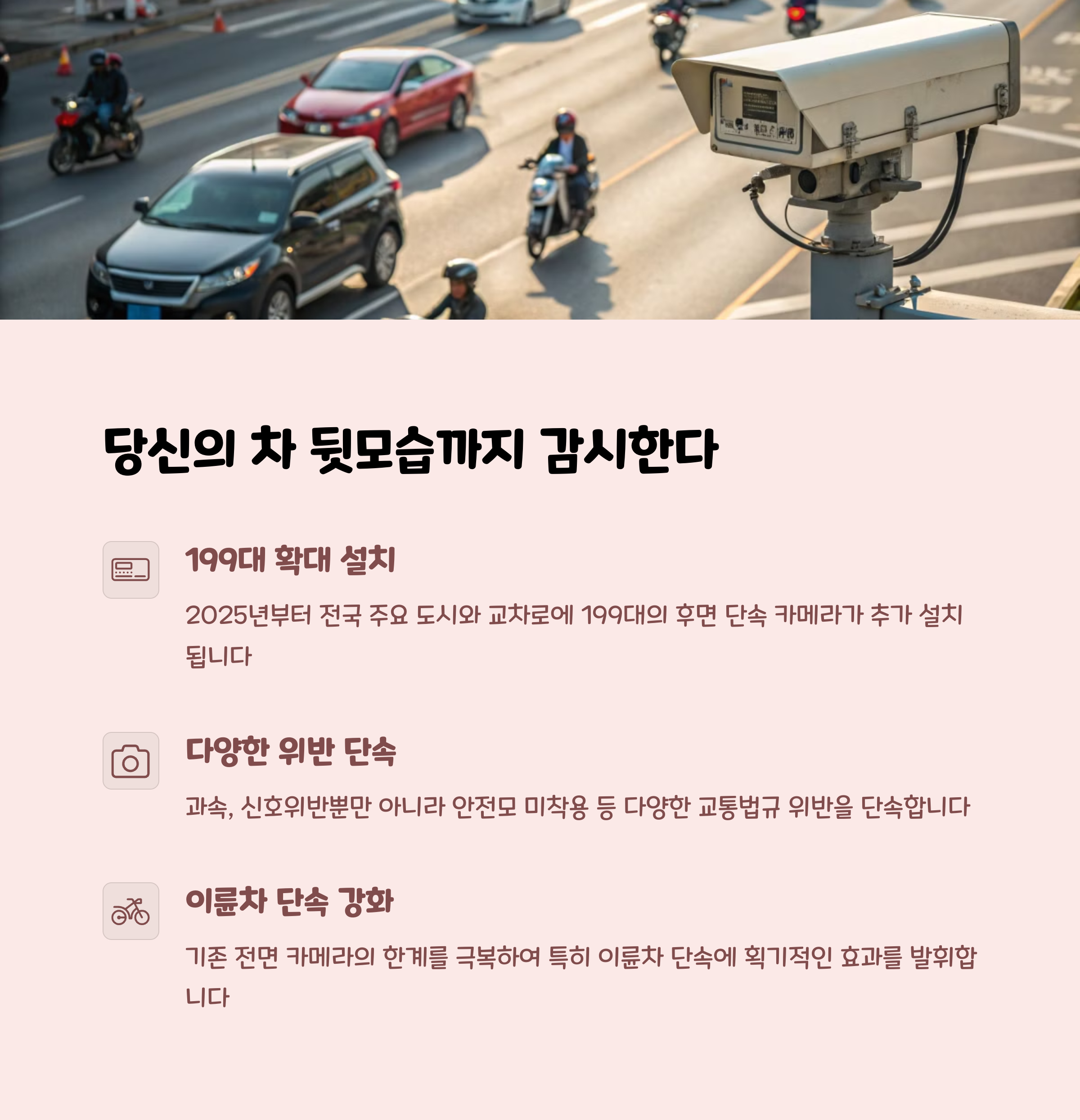 2025년부터 전국 도심지 중심으로 빠르게 확대되는 후면 단속 카메라! 연말까지 약 199대 추가 도입이 예정되어 있습니다.