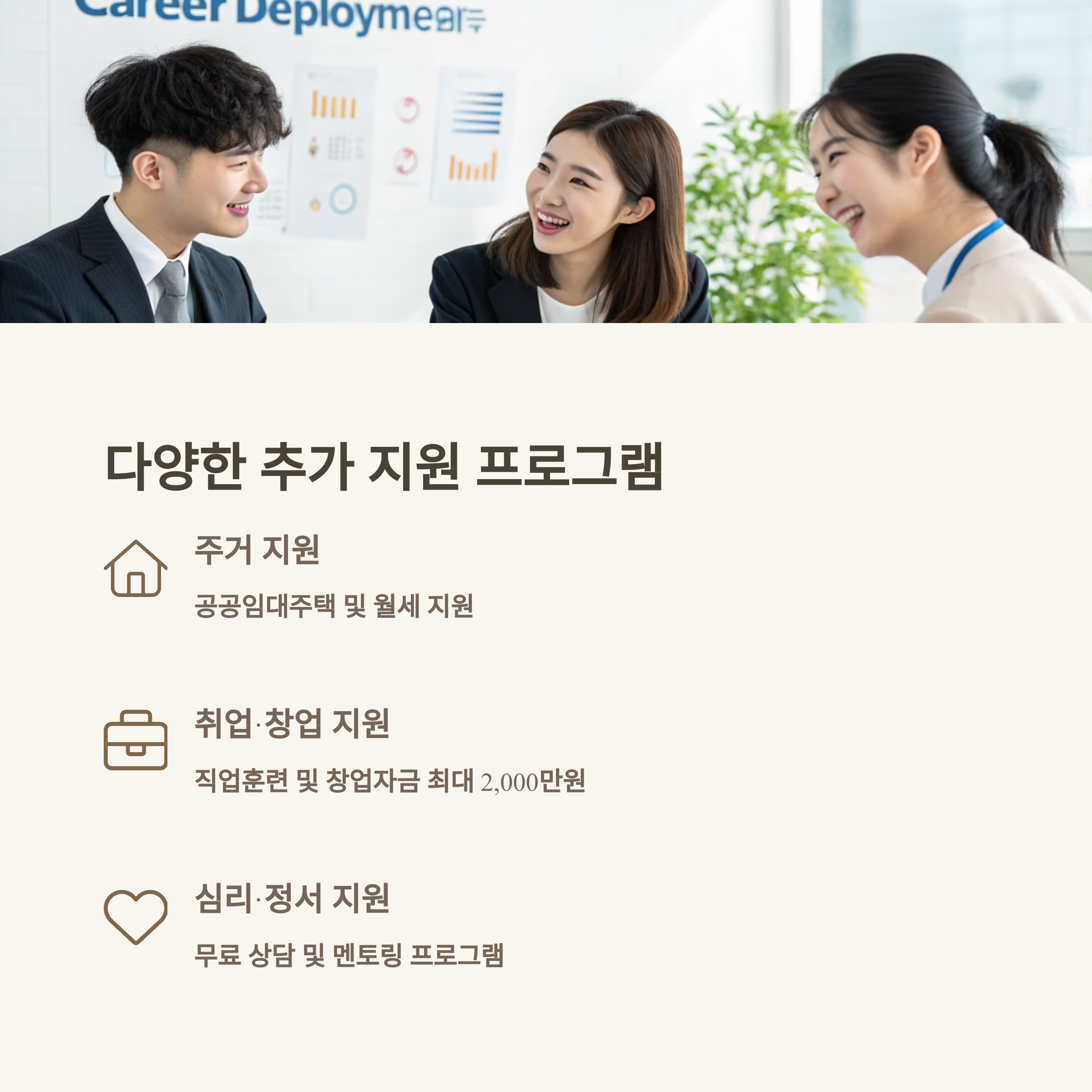 2025년부터는 자립준비청년을 위한 주거, 취업, 교육 분야 지원이 대폭 강화됐어요.