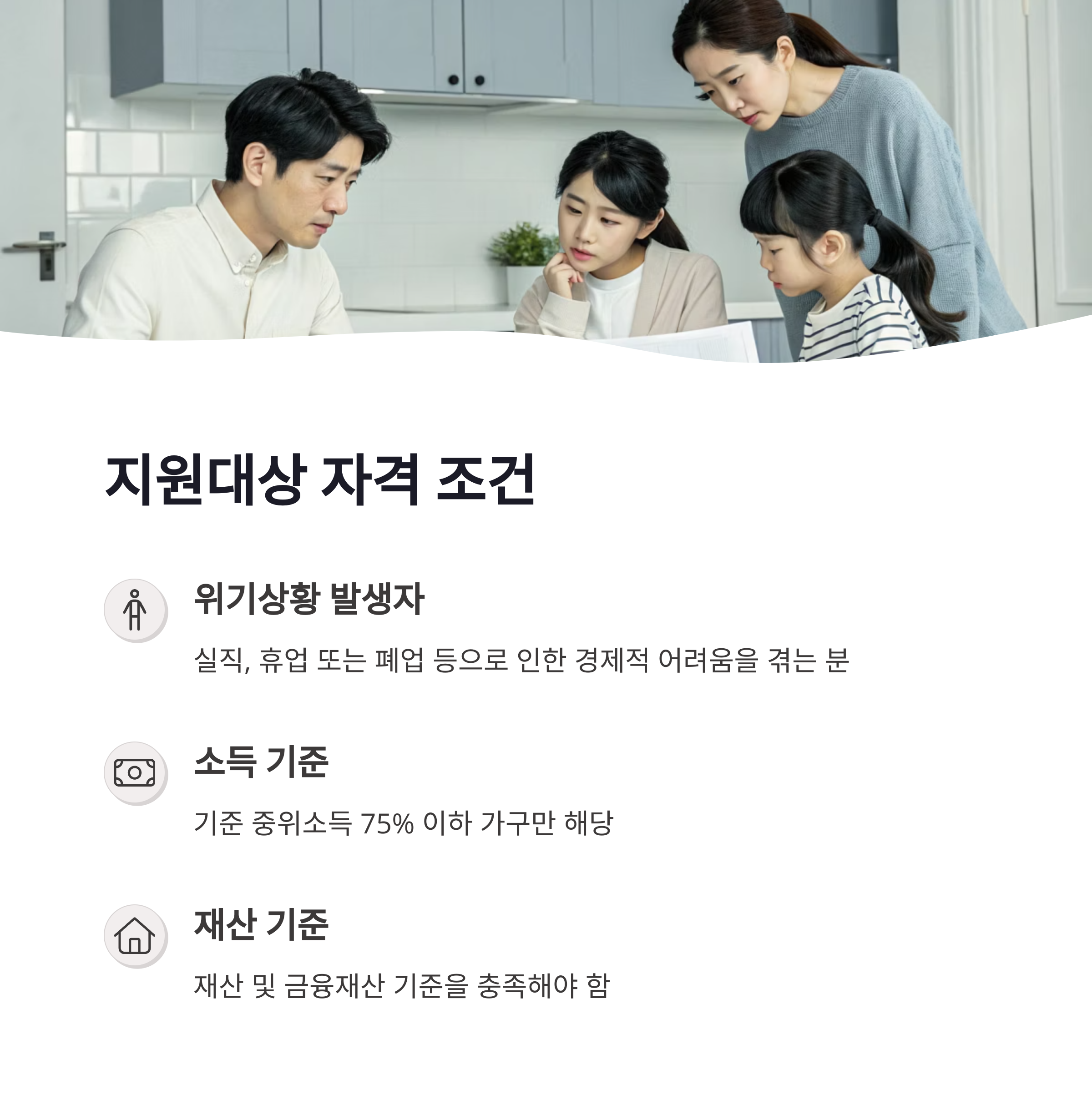 실직·휴폐업 등 위기상황, 소득·재산 기준까지
