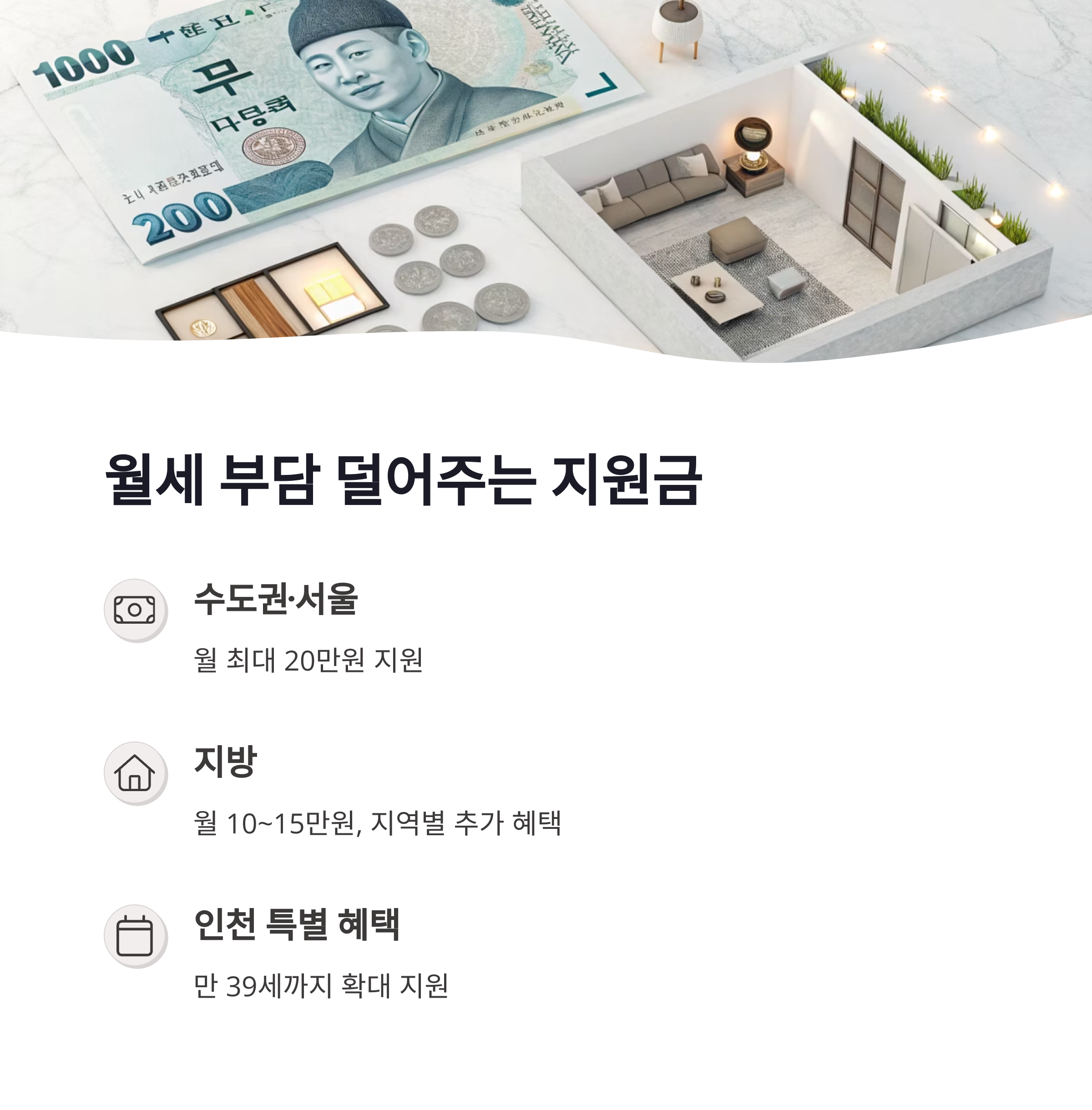 서울·수도권은 월 20만원, 인천은 만 39세까지,