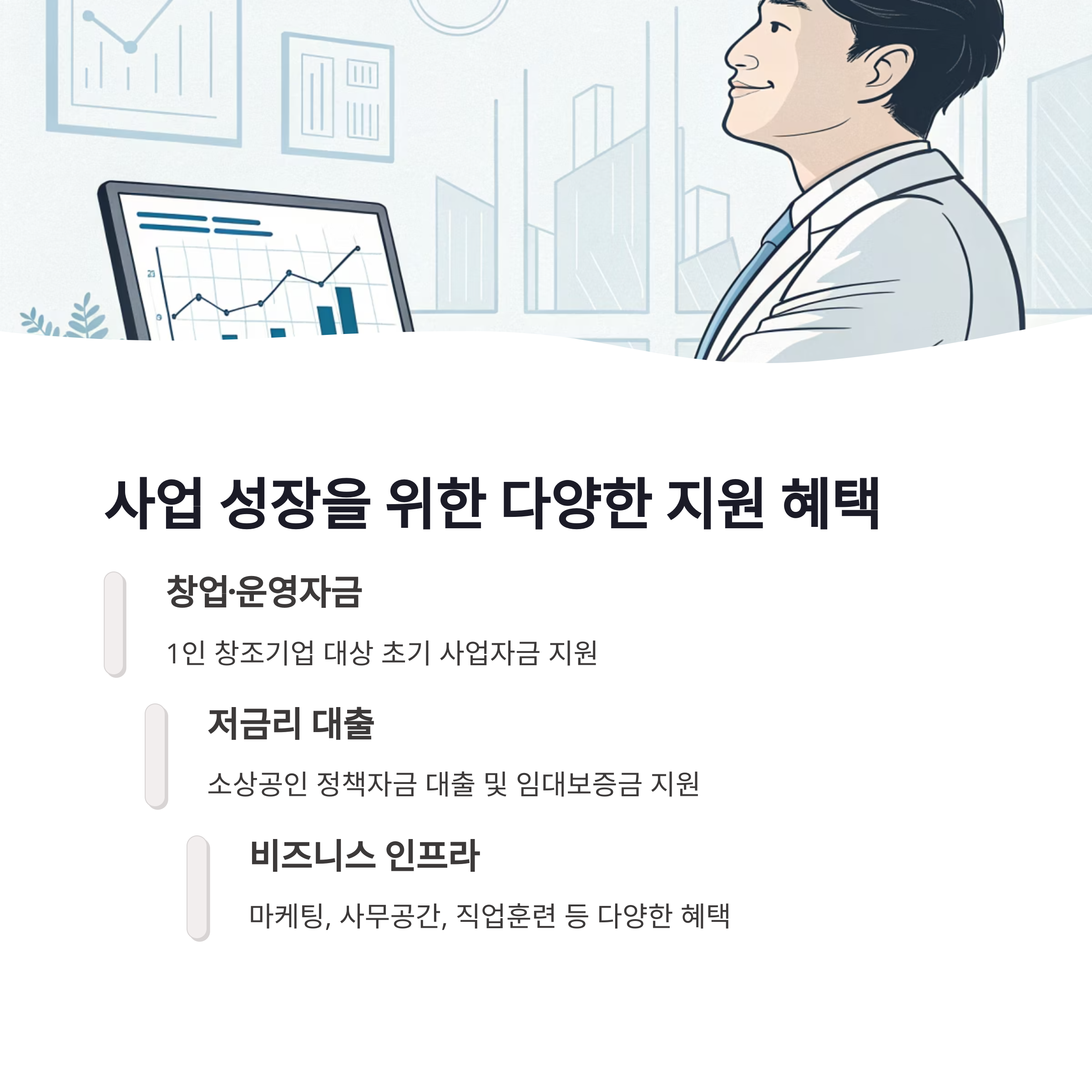 또는 1인 기업이라면 창업 보조금, 사무공간, 마케팅