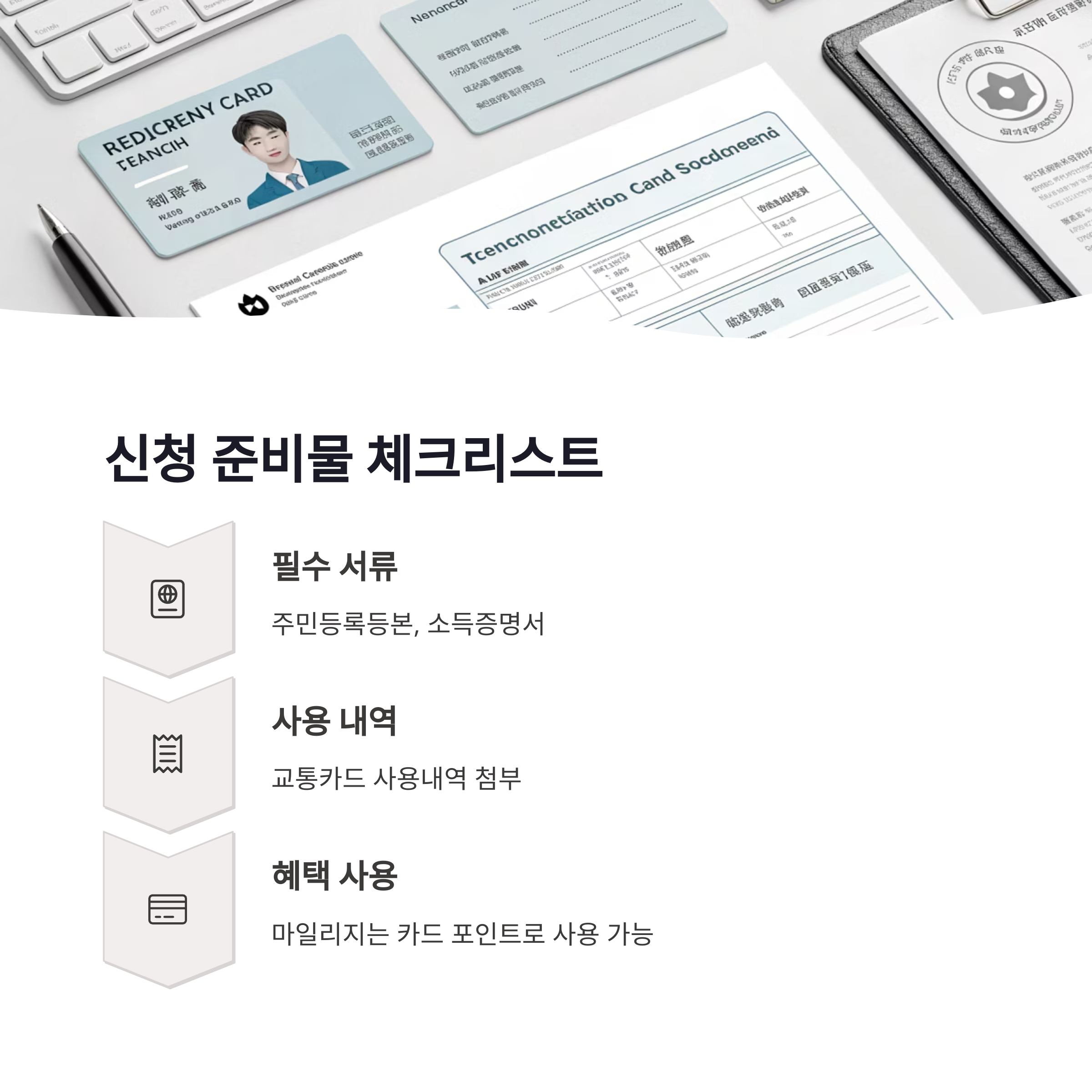 주민등록등본, 소득증명, 교통카드 사용내역 필수