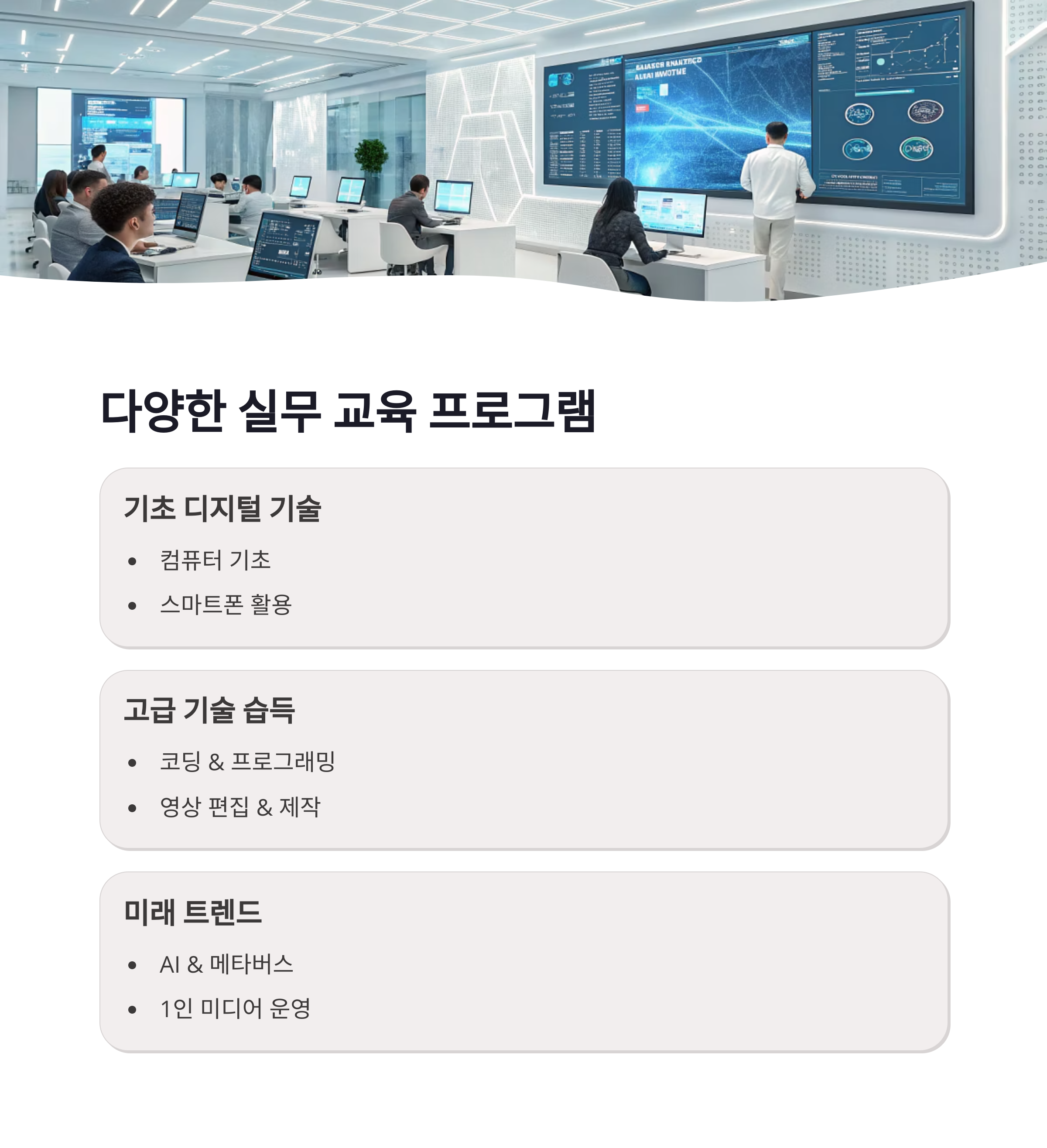 컴퓨터, 스마트폰, 코딩, 영상편집까지 실무 중심