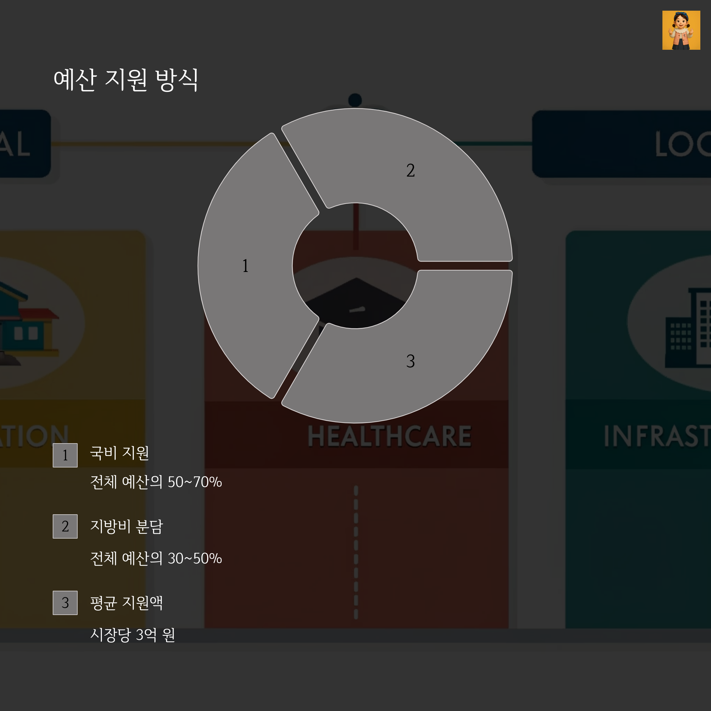 일반적으로 국비 50% + 지방비 50%의 매칭 방식으로 진행됩니다.