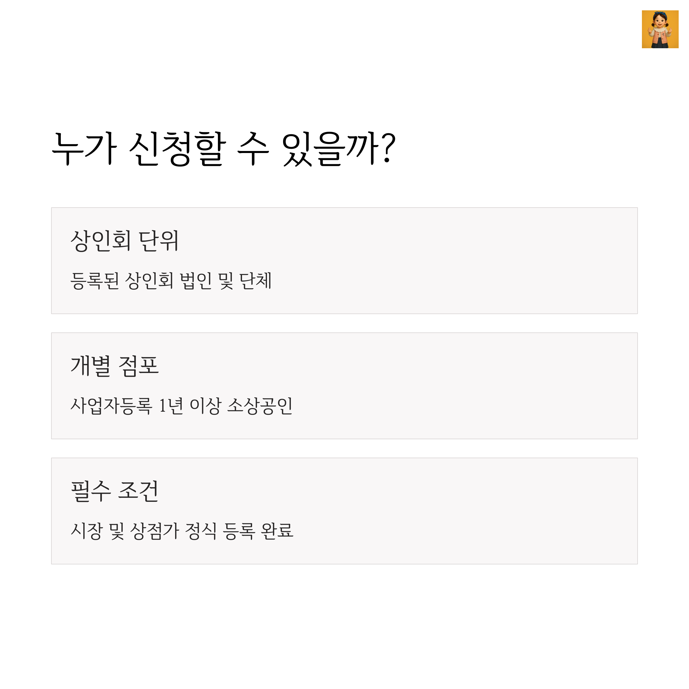 개별 점포주가 직접 신청할 수 있는 항목도 있지만,